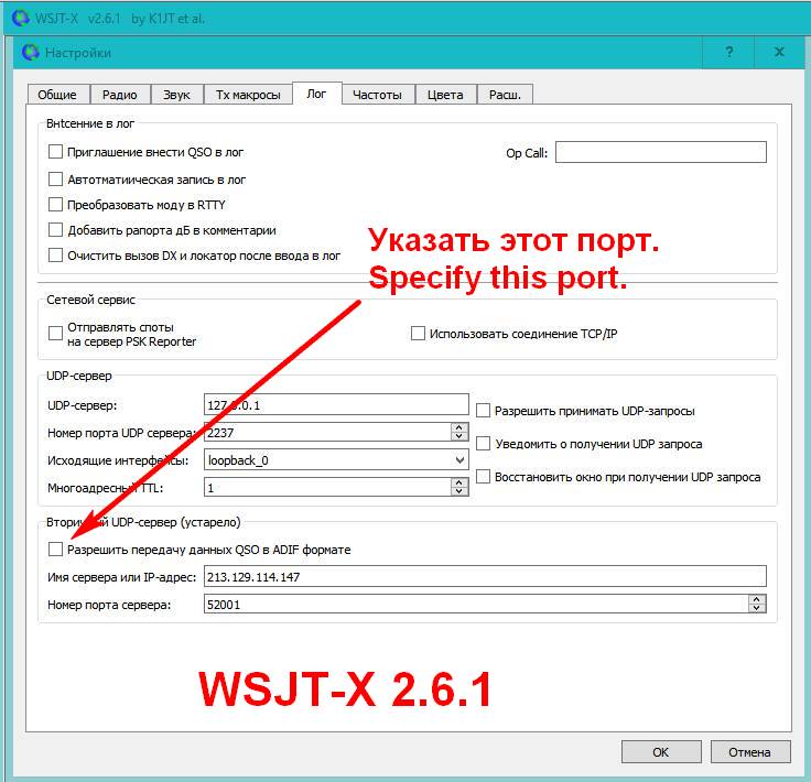 Программы: Любой софт поддерживающий FT8/FT4 и настроенный на передачу QSO на сервер. Примеры настроек приведены ниже. В настройках IP сервера 213.129.114.147 порт 52001 следует использовать только один протокол UDP. По окончании игры отключите отправку QSO на сервер (снимите галочки).