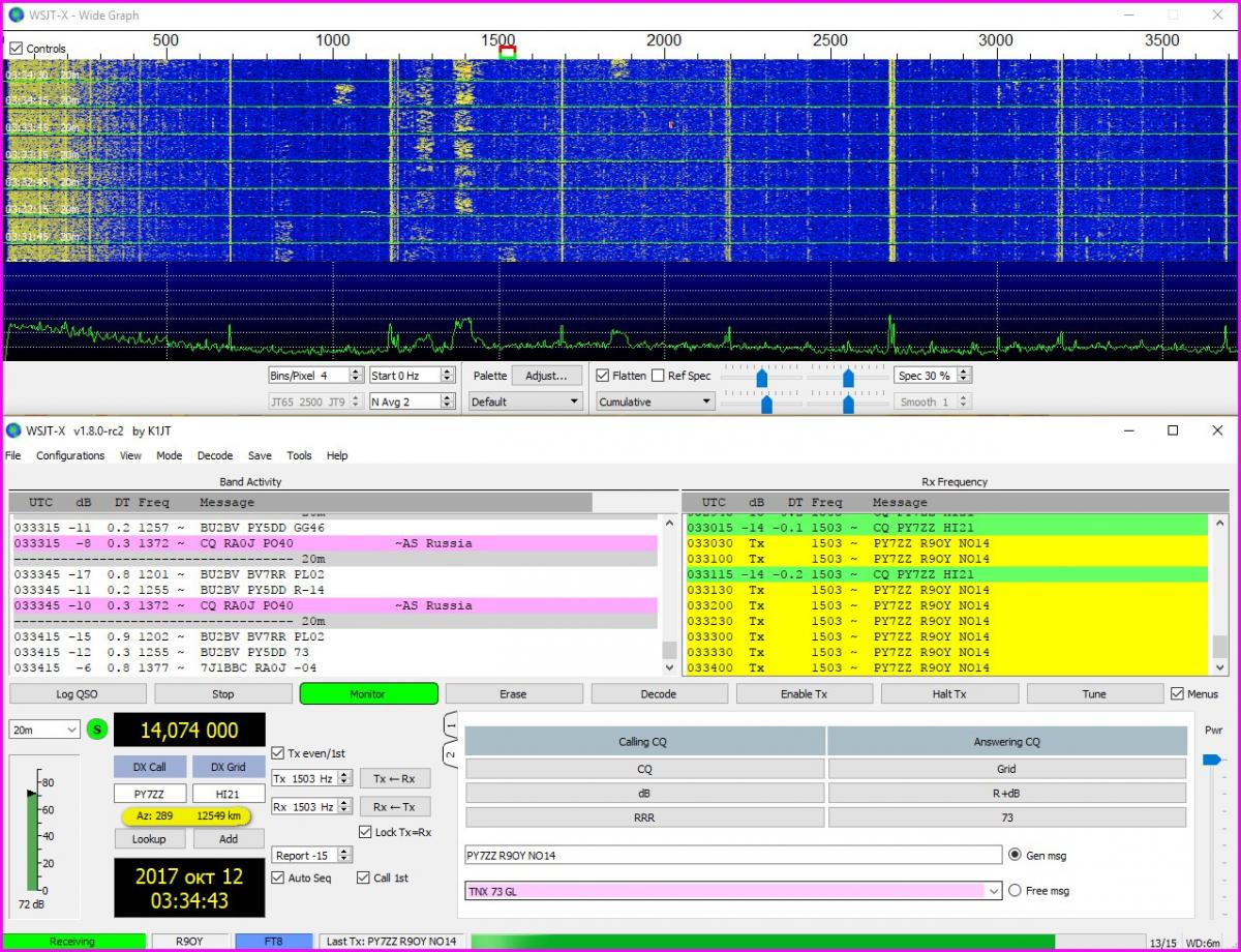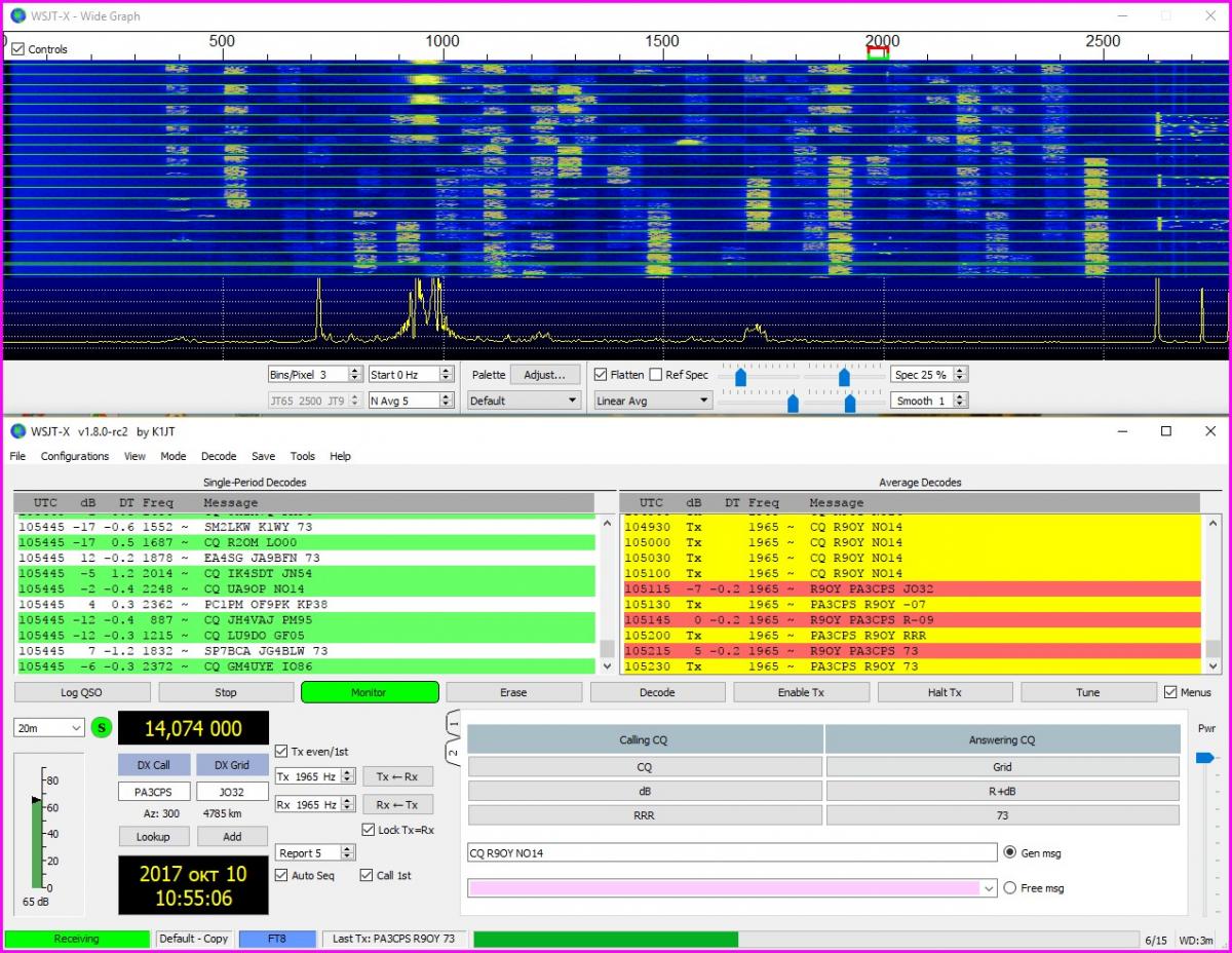 Доброе время суток всем. Давно ждал такую программу как FT8, за одну минуту - 4 связи!( позывной, RRR-73) Всё в автомате, мощность тут действительно не нужна, я на 100 вт проверил - рапорта дают +0,0db а то и +0.4 db на Яги. Работает она сплитом, и разгребает быстро ( одна связь за 10-13 сек в одну сторону), вот с длинными позывными проблема. По моему за этой программой будущее, так как она работает быстрее чем JT65.