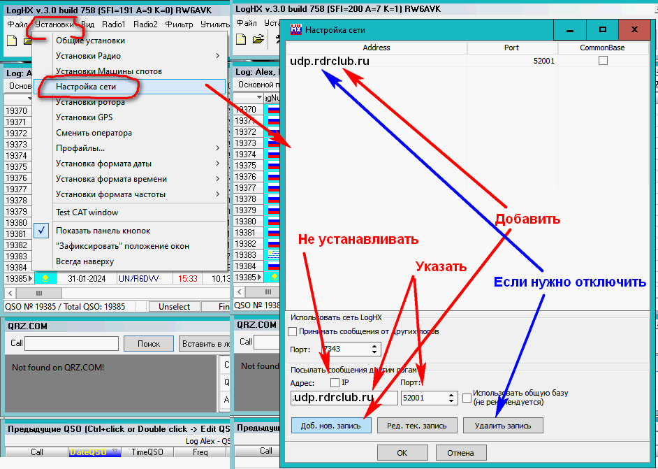 Внимание! Если в N1MM редактируется/удаляется случайно занесенное QSO в лог, то в LogHX изменений не происходит. Это связано с тем, что в N1MM связь однозначно идетифицируется по <Timestamp> - это время занесения QSO в лог. В LogHX такого праметра нет, поэтому исправляем только ручками.