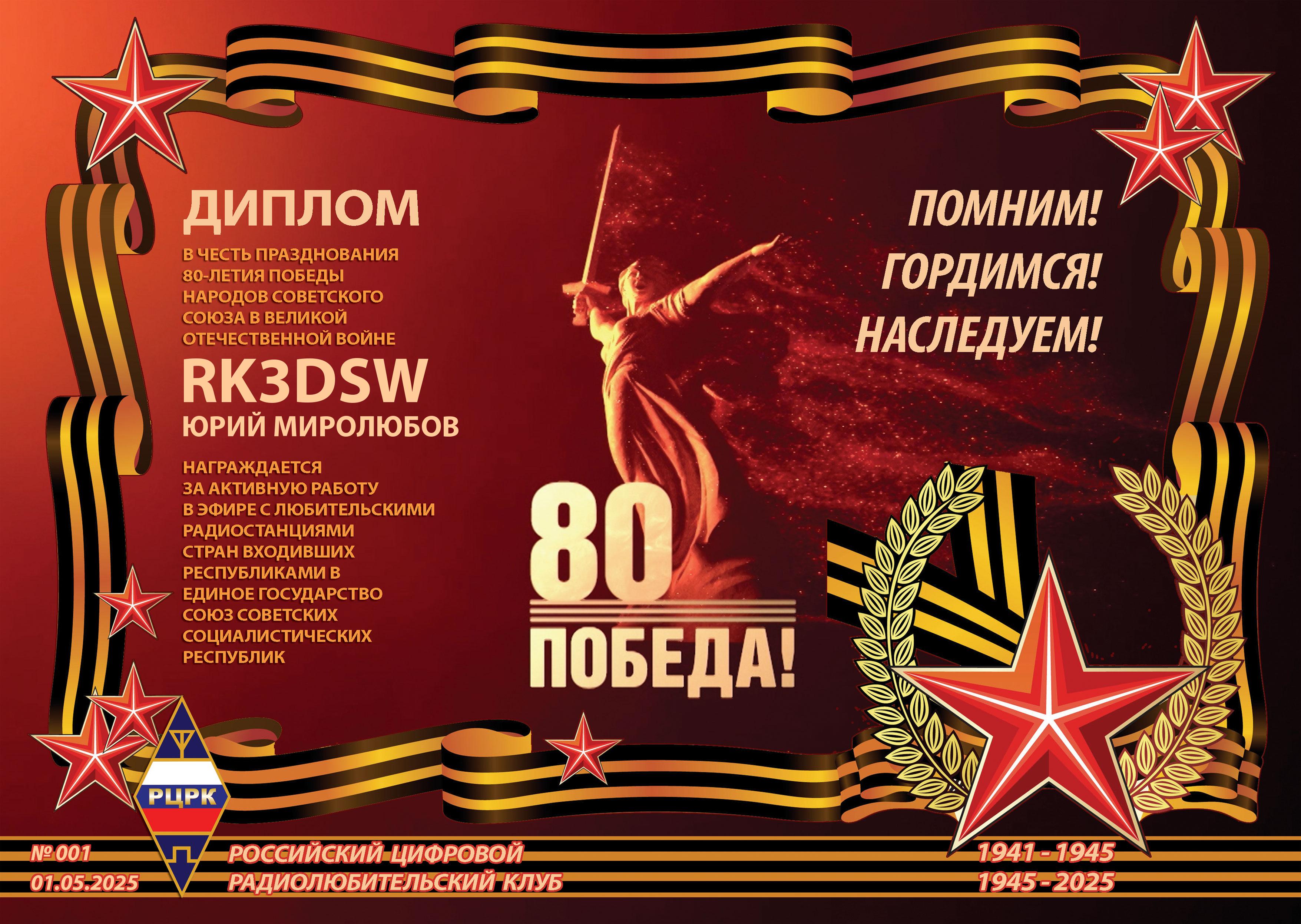 Выдан диплом: № 002 от 03.05.2025 - DL1RI