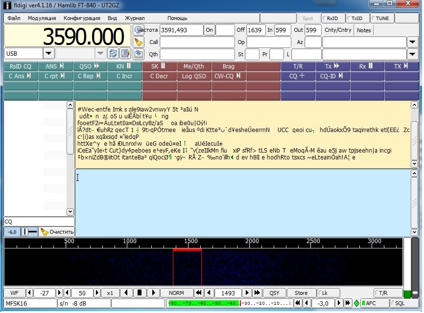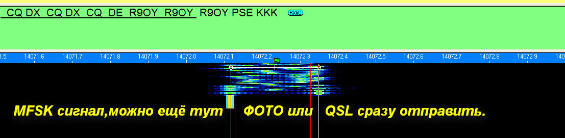 Окно fldigi для приема MFSK.