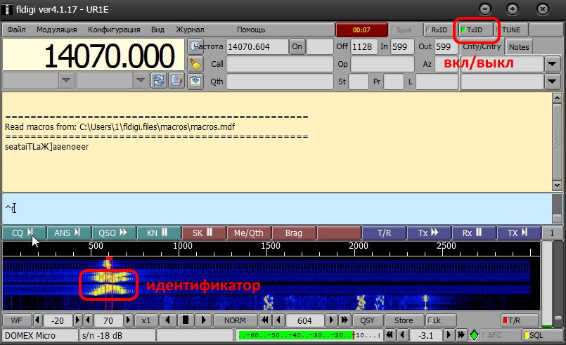 Я при включенной TxID и при выключенной у себя проверил, у меня Fldigi - 4.1.08