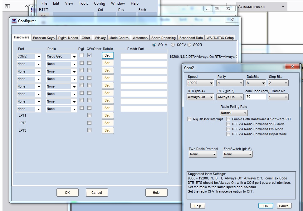 что-то никак не найду кнопку протестировать что Xiego g90 управляется (связался) с программой управления, как это обычно в других прогах, у кого есть опыт настройки N1MM Logger+ в связке с xiego прошу поделиться !