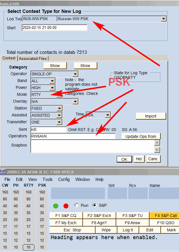 Где-то что-то не настроено для "текущего" контеста. Посмотрите внимательно еще раз https://www.rdrclub.ru/index.php/nas...nastrojka-n1mm с абзаца "Теперь выберем тест, в котором будем работать. Для этого в меню..." Выбирайте, в котором планируете работать, например RUS-WW-PSK... Указывайте OBL и т.д.