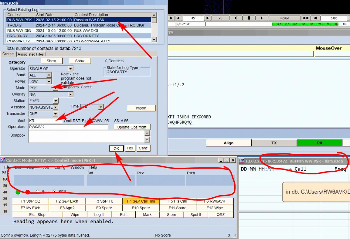 Где-то что-то не настроено для "текущего" контеста. Посмотрите внимательно еще раз https://www.rdrclub.ru/index.php/nas...nastrojka-n1mm с абзаца "Теперь выберем тест, в котором будем работать. Для этого в меню..." Выбирайте, в котором планируете работать, например RUS-WW-PSK... Указывайте OBL и т.д.