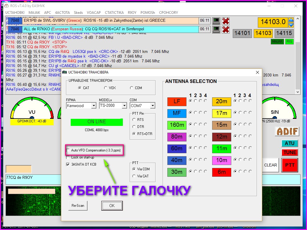 2. можешь вообще не использовать САТ и менять частоту вручную... тогда на этой же страничке сними галочку в Use RigCAT... у меня так и сделано - сейчас использую простой "шнурок" без САТ, поэтому меняю частоту вручную...