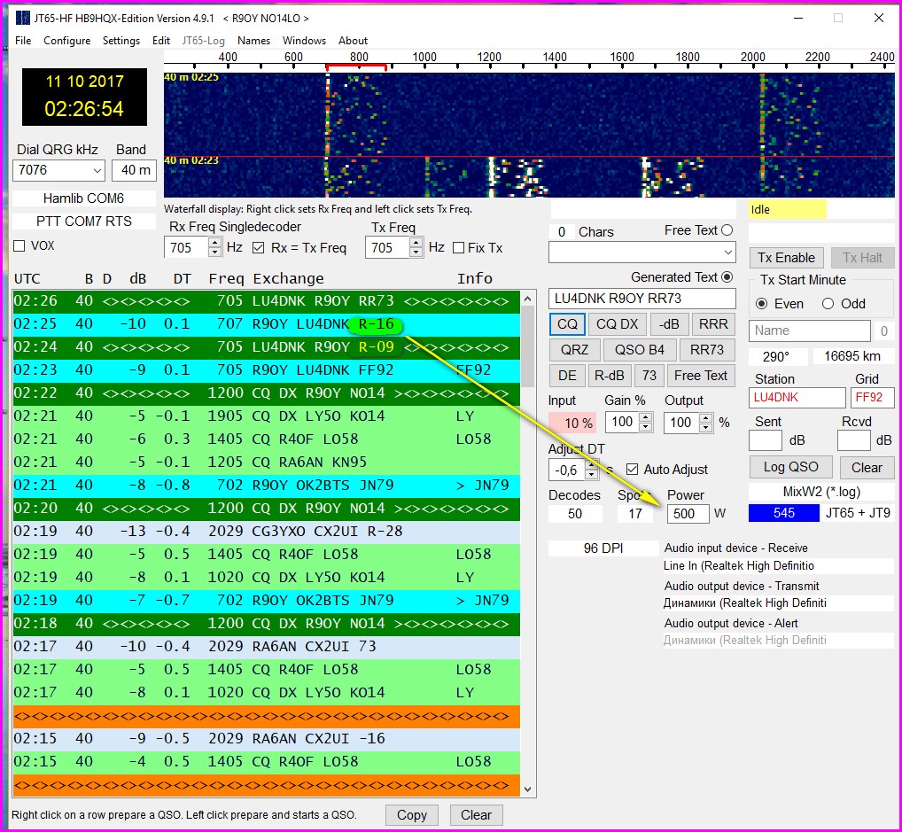 Доброе время суток всем. Давно ждал такую программу как FT8, за одну минуту - 4 связи!( позывной, RRR-73) Всё в автомате, мощность тут действительно не нужна, я на 100 вт проверил - рапорта дают +0,0db а то и +0.4 db на Яги. Работает она сплитом, и разгребает быстро ( одна связь за 10-13 сек в одну сторону), вот с длинными позывными проблема. По моему за этой программой будущее, так как она работает быстрее чем JT65.