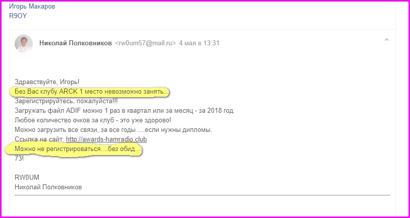 На сайте http://awards-hamradio.club/ идет некое соревнование между клубами. Наш клуб тоже участвует,мы пока на 2-м месте,несмотря на то,что участников почти в 2 раза больше,чем у КДР-цев. Из таблицы видно,что они нас обходят по НЧ диапазонам. Кто работает на НЧ,особенно 160 и 80 м,можно там зарегистрироваться и помочь клубу в повышении своего рейтинга на этом ресурсе. Кроме того,там можно выполнить и скачать бесплатные дипломы в эл.виде и заказать плакетки.
