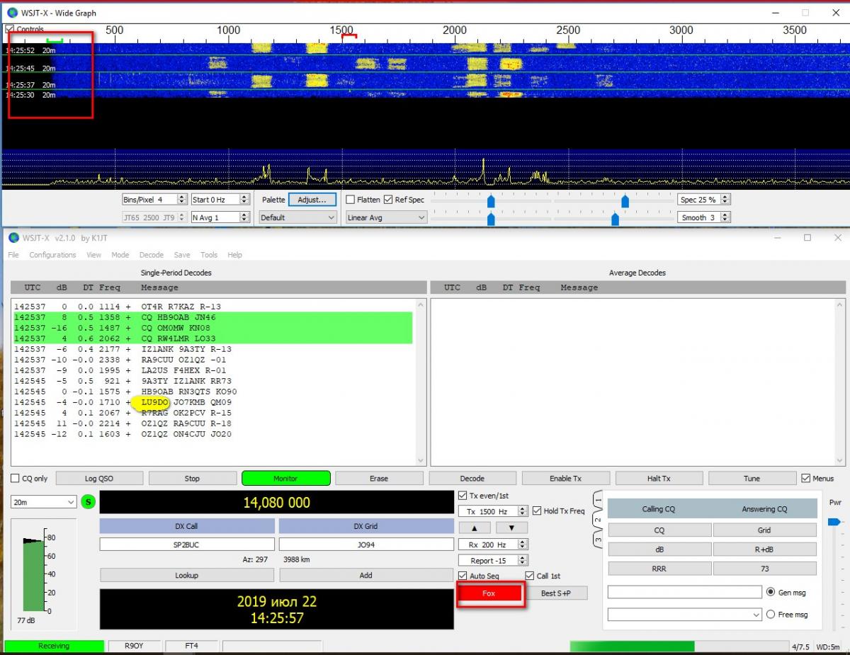 FOX включать только для позывных экспедиции, при этом на основной лицевой программе загорается красное табло "FOX "включён.
