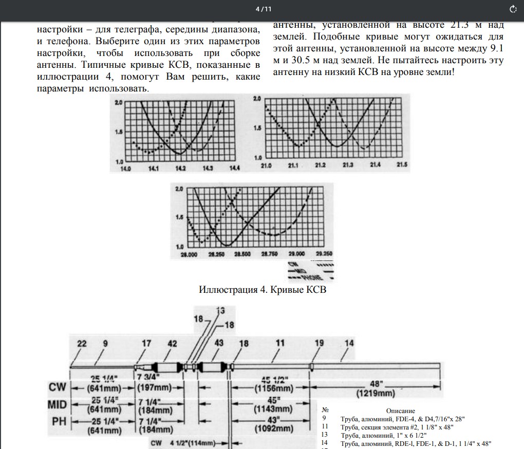Из картинки видно узкая полоса, шаг влево или в право - расстрел! Возникает обратка тока по наружной оболочке кабеля. Токовый дроссель имеется. Понятно, что уход от резонансной частоты настройки антенны ( куда она настроена, CW -MID- PH ) меняется импеданс от 30 ом до 116 ом. Возникает обратка тока ВЧ по оплётке кабеля при 500 вт и более, при 100 вт - терпимо.Есть ток ВЧ но не большой. Естественно и меняется уровень приёмного сигнала. Уход от резонансной частоты антенны меняются все параметры приёма и передачи сигнала. Характеристики антенны на скрине. В инструкции антенны сказано, что нужен тюнер, он у меня в трансмиттере имеется. На УМ его нет, ручная настройка.