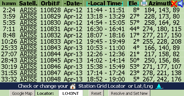 время пролета станции над вашим квадратом можно смотреть тут: http://mib.vrn.ru/amsat/pass.htm#