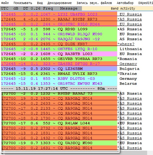 Может кто подскажет мне "чайнику", у меня проблемы в чём с приёмом? Вижу три сигнала, уровень у всех разный, а меня принимают с одним сигналом. Может настройки не те использую в программе? Принимаю сразу " АВТО" поток декодирования сигнала в FT8. Может надо уменьшить поток декодирования сигнала, ну например 2-3?
