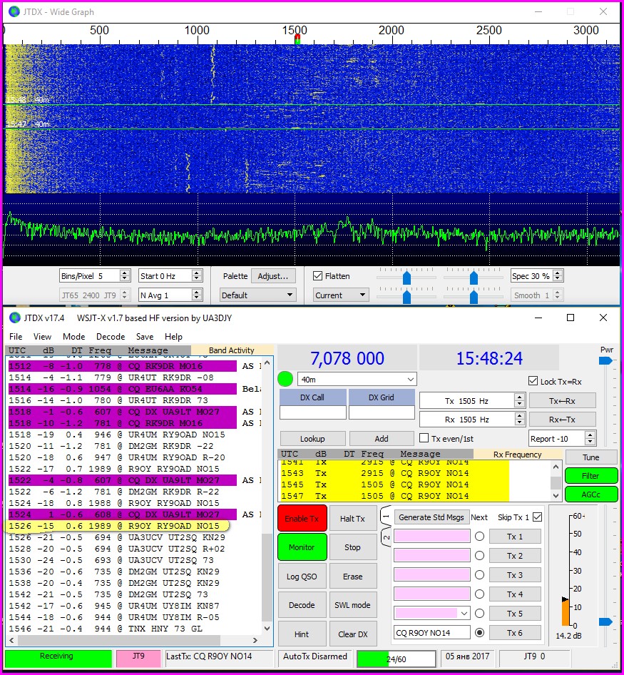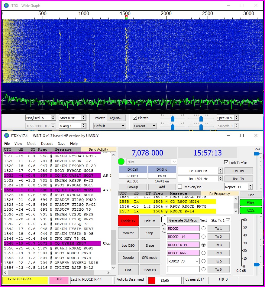 Сегодня часа 2 с перекурами звал в МТ, подошел только один R2PJ (спасибо) Все месили JT9 и ROS.