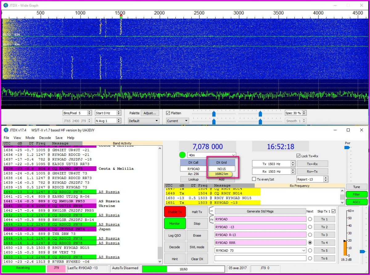 ROS у меня нет, а JT9 в основном Азия помогла сделать 10 связей.