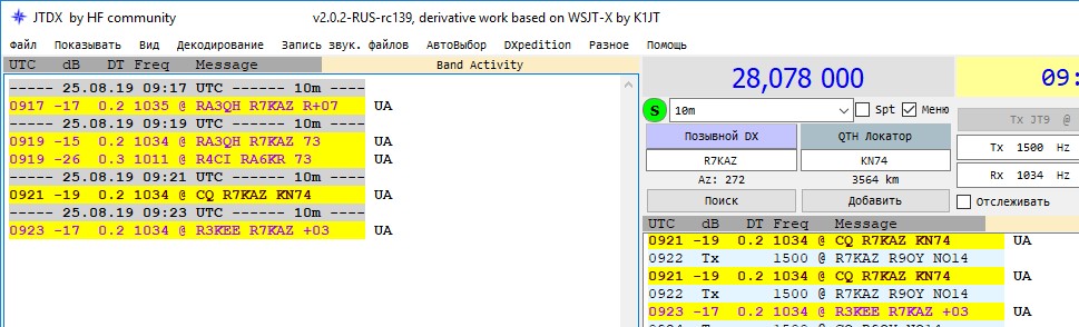 работал двум программами JTDX и WSJT-X.Первая понравилась больше ,хотя вторая тоже не плохо но что то с настройками намудрил ,и иногда терял время на связях да и прохождение не баловало . Отчет отправил 26 числа