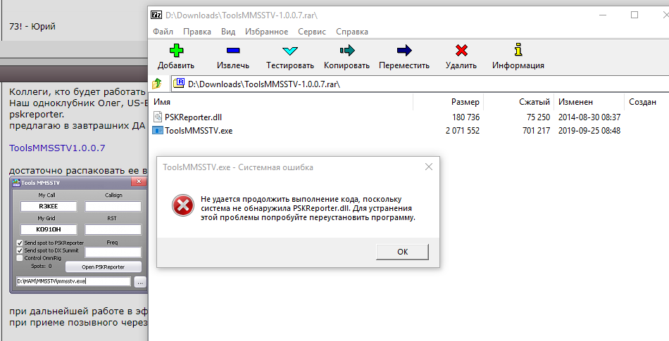 Роман забыл указать, что программа писалась под UR5EQF, но может работать и без него. При работе с EQF, пропишите её в Быстром запуске и стартуйте оттуда. В EQF во Внешних программах MMSSTV должна прописана и выбрана (иконка должна быть). Но стартовать нужно эту программу из Быстрого запуска. Программа развернёт MMSSTV и подключит её к логу.