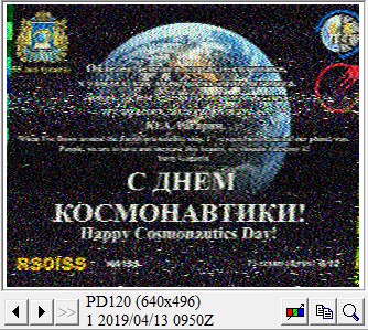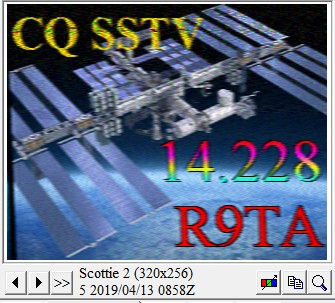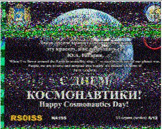 На портативку что-то в этот раз получается слабо, попробую еще через час, элевация будет больше. Принимал на baofeng -82 c родной антенной-резинкой в огороде, смартфон Samsung. Правда сильный северный ветер,некомфортно принимать,но слышно было с шумами. Почти не видно картинку и синхронизация хромает