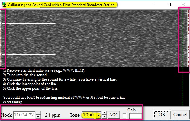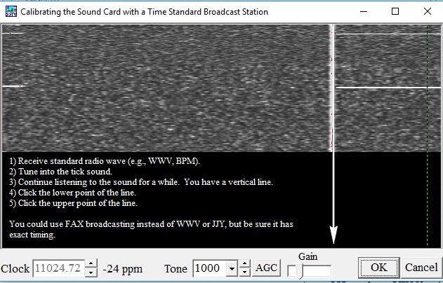 Можно конечно по сигналам WWV, как рекомендует UN8FE (см."Настройка MMSSTV " на нашем сайте в разделе SSTV).