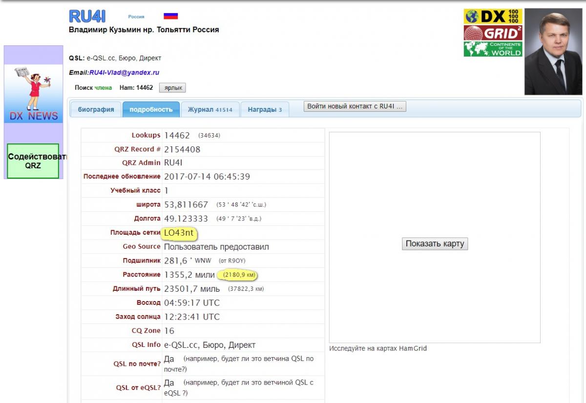 <STATION_CALLSIGN:4>R9OY <CALL:5>ZL3NB <QSO_DATE:8>20180315 <TIME_ON:6>083130 <TIME_OFF:6>083329 <FREQ:6>18.102 <MODE:3>FT8 <RST_RCVD:3>-14 <RST_SENT:3>-13 <GRIDSQUARE:4>RE66 <DISTANCE:5>13862 <QSLSDATE:8>20181215 <QSL_SENT:1>Y <QSLRDATE:8>20181215 <QSL_RCVD:1>Y <DXCC:3>170 <ITUZ:2>60 <CQZ:2>32 <COUNTRY:11>New Zealand <CONT:2>OC <QSO_ID:5>10938 <EOR>