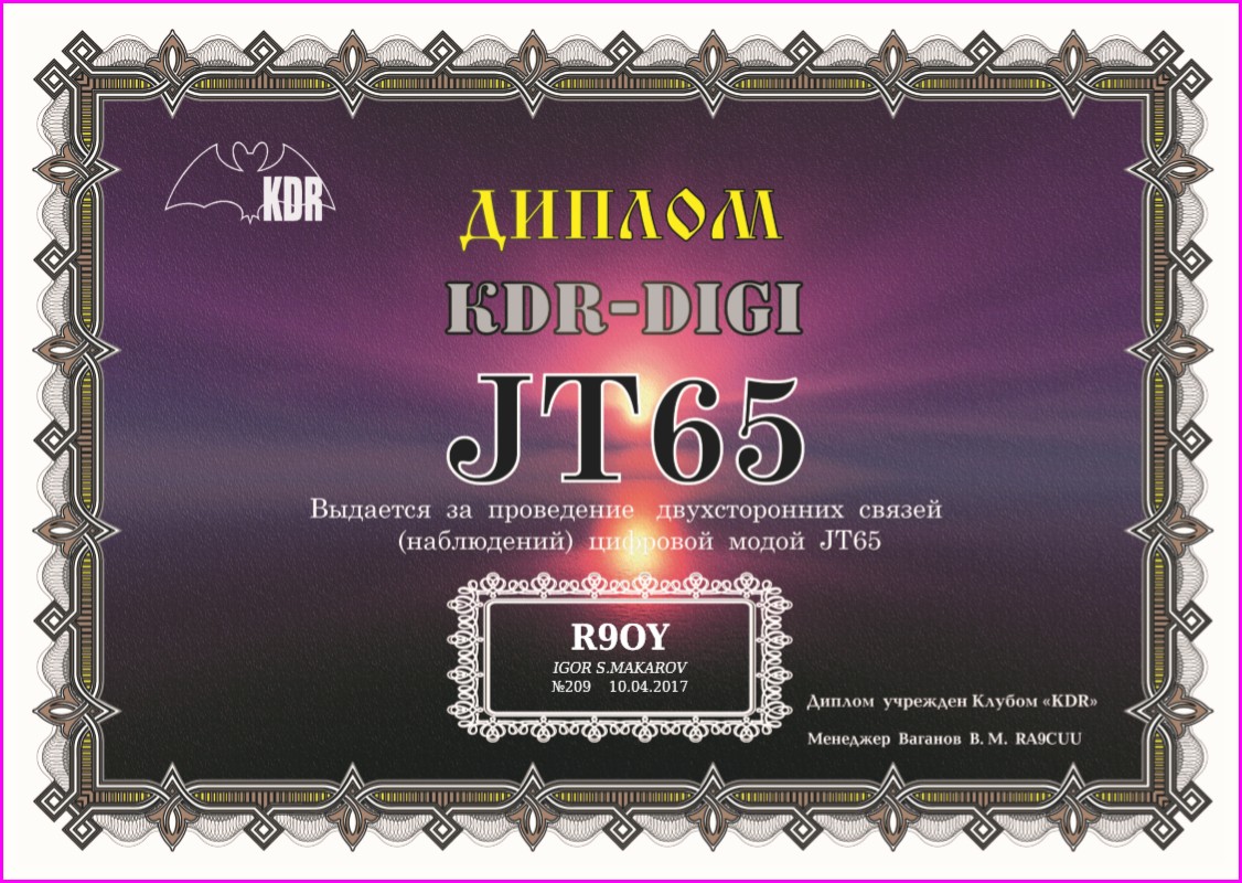 PS. В этом клубе КДР ранее был порядок когда был OH5ZZ президентом этого клуба, а сейчас другой президент и ему всё по барабану, одним словом этот клуб разваливается, даже на Хамлоге у меня не указан номер члена КДР, обращался к модератору, нуль эмоций и на е- маил не отвечает.В КДР дипломами DIGI просто ни кто не занимается.