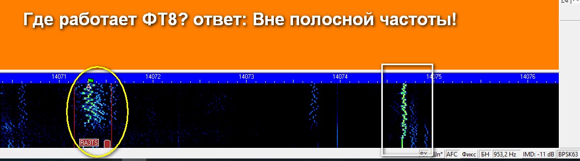 Отгадайте загадку и решите вопрос ... откуда это идёт? Какая ширина сигнала ФТ8? 47 гц? Не угадали ... больше!
