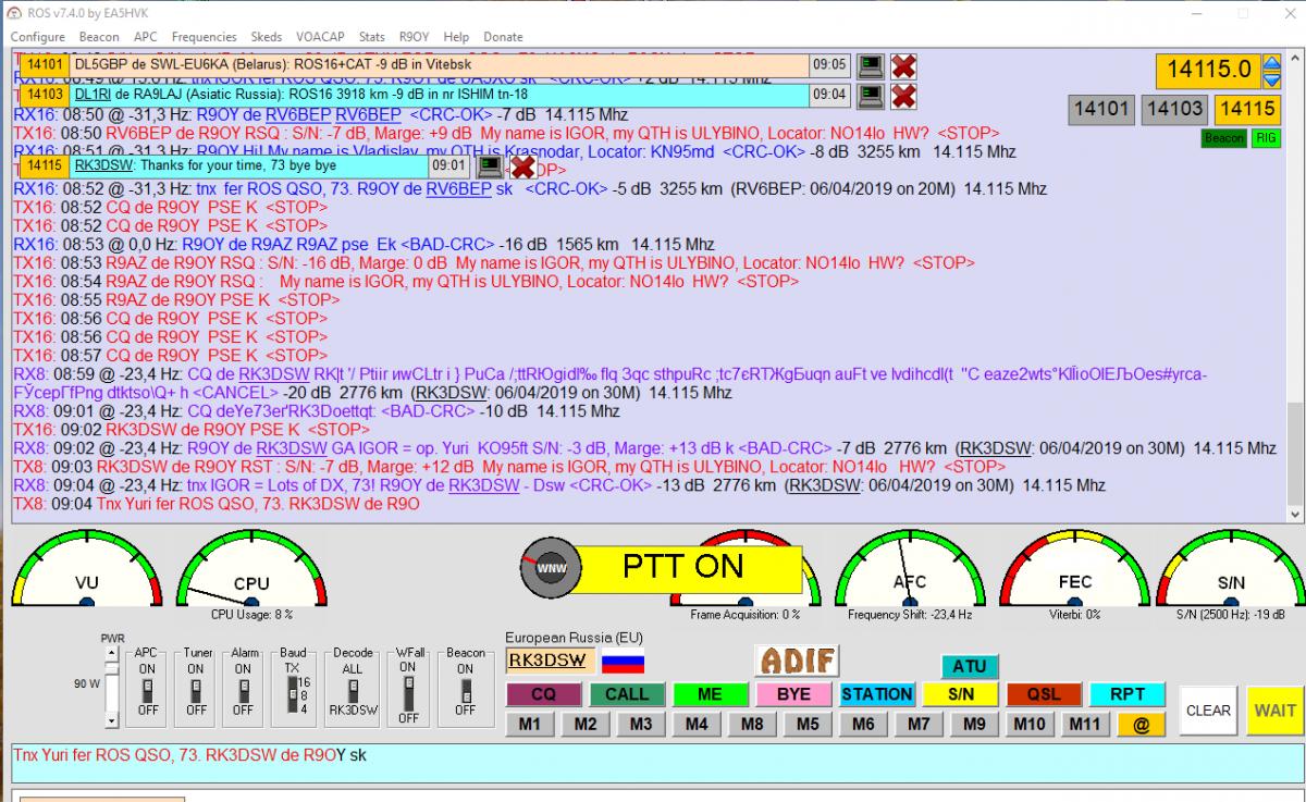...что FT8 сигналы в несколько раз сильнее ROS...