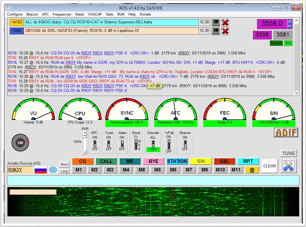 ROS v7.4.0 (Weak Signal Radio Chat)