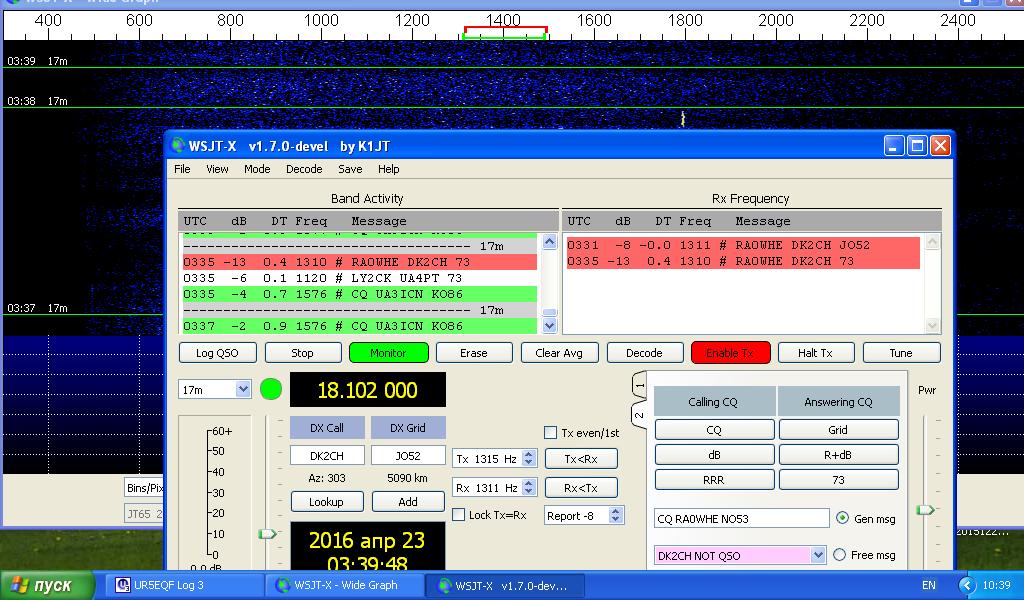 Одинокий сигнал JT9 RA1N принимаю без проблем и качество сигала отличное. Вот бы побольше таких сигналов без хвостов.