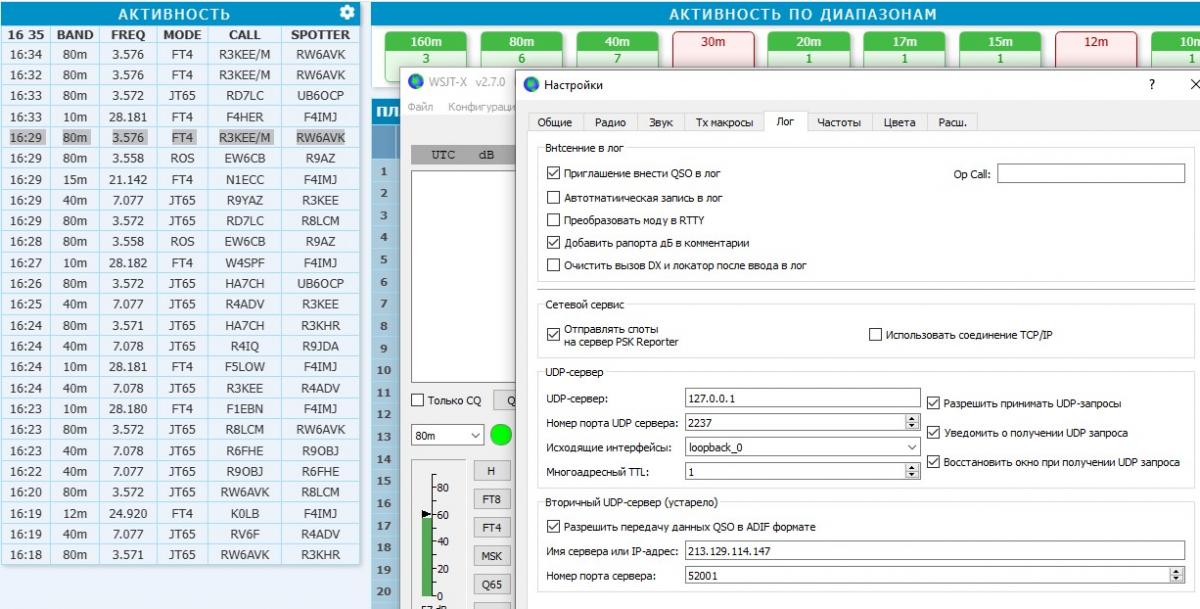 В настройках WSJT-X v2.7.0 в Settings -> Reporting -> Secondary UDP server указал 213.129.114.147 port 52001 в соответствии с инструкциями на https://udp.rdrclub.ru/help/